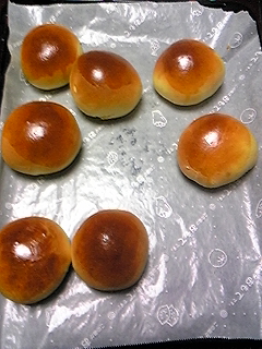 今回は普通にバターロール生地(卵多め)で丸いパンを。